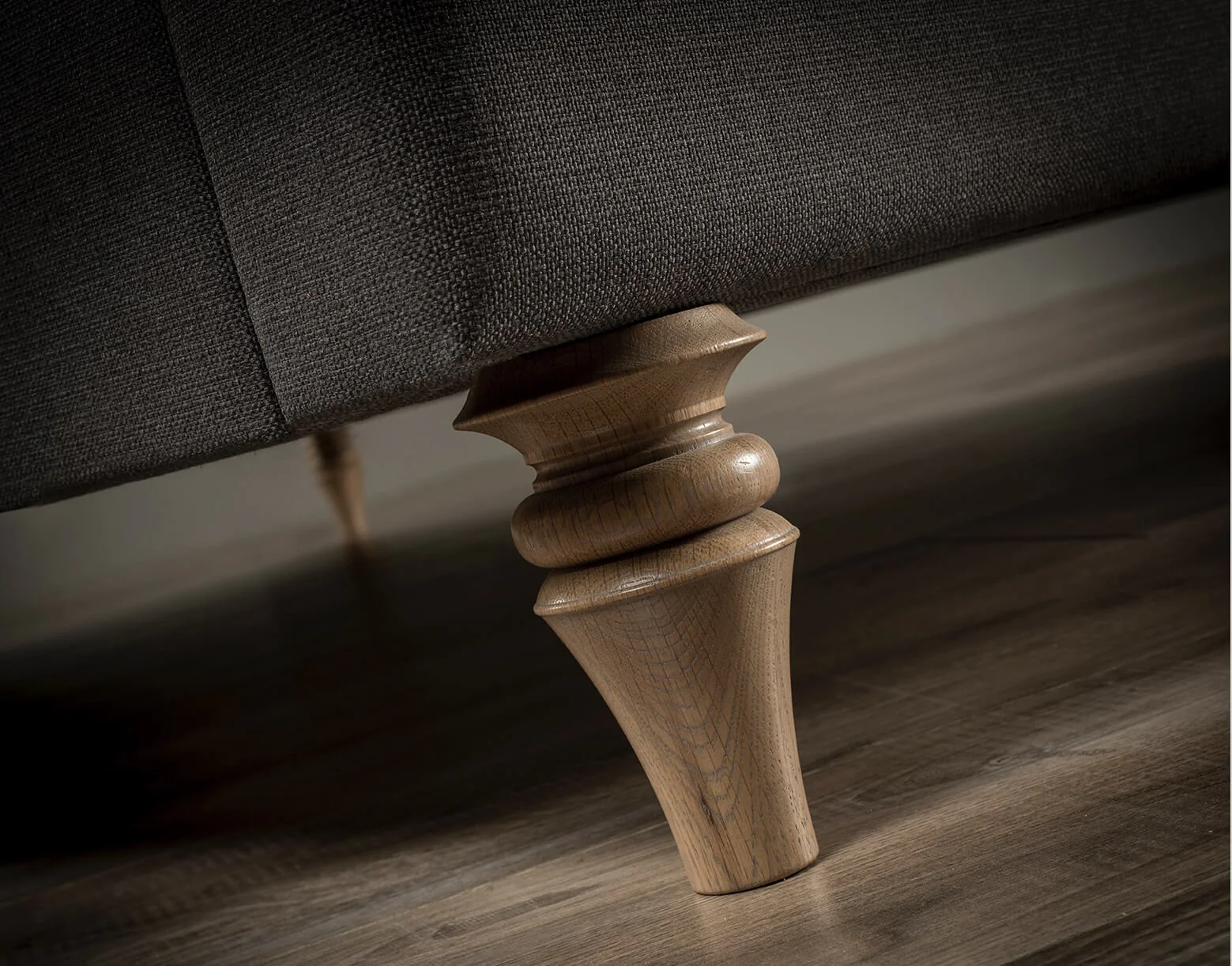 The Allure, photographed above, has been upholstered in Lino Slate linen.