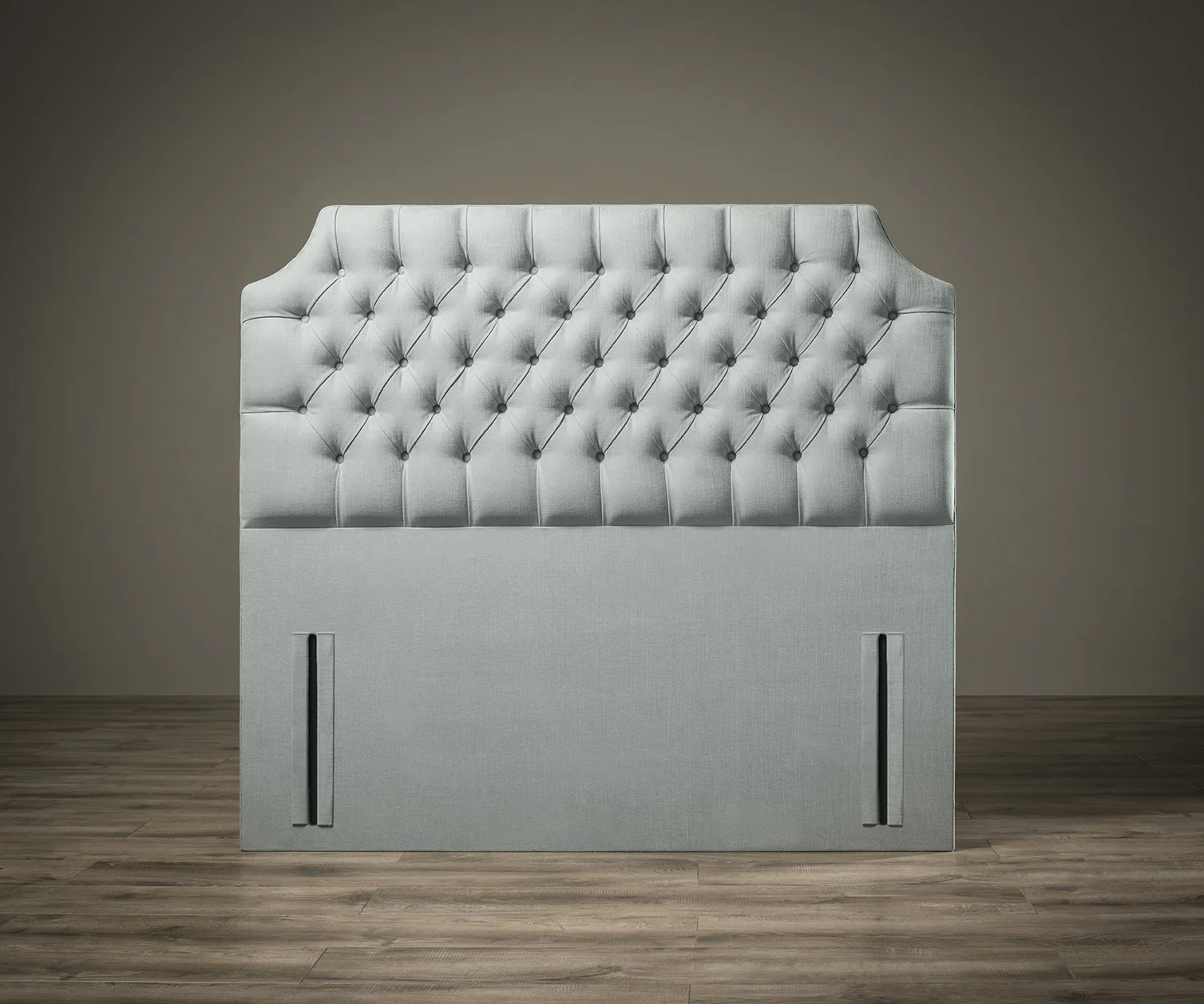 The Bella Chesterfield Headboard is a stunning feminine take on our classic chesterfield headboard collection. The front panel has been deeply buttoned for an experience as comfortable as it looks. The unique feature of our Bella headboard is the elegantly curved chamfers. This floor standing headboard is handmade from a solid hardwood mix and measures 140cm high. The Bella conforms to UK size standards and will fit any standard UK size divan base.