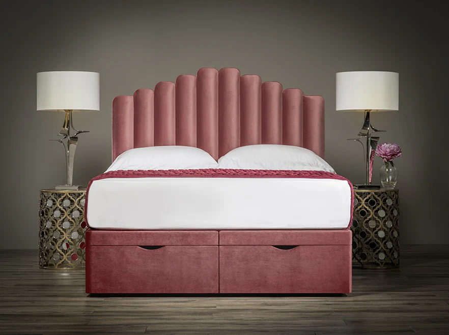 It has been photographed in Blush mystic velvet behind our Twix Premier Ottoman Bed.