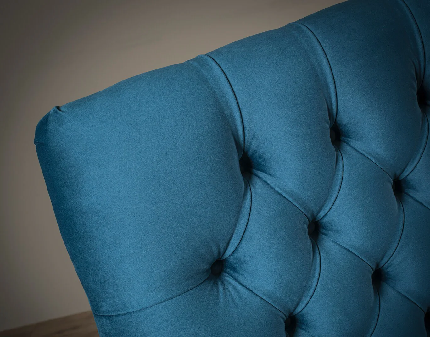 The Doux Chesterfield HeadboardĀ has been photographed in Blue SonettiĀ Velvet.