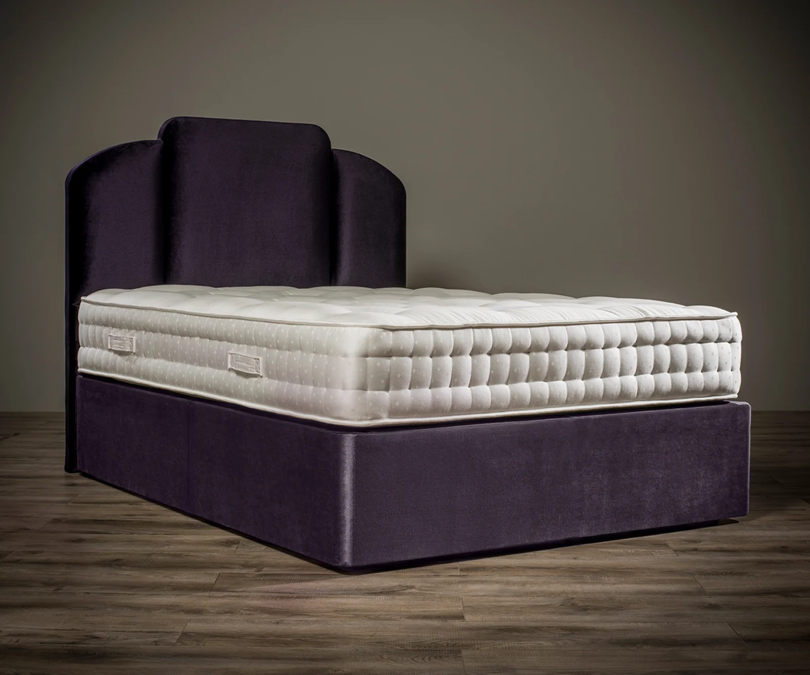 The Premier Divan Base has been photographed with our custom-upholstered headboard. Both have been covered in Amethyst Mystic velvet. Headboards and mattresses are purchased separately. The divan can be paired with any standard UK sized headboard.