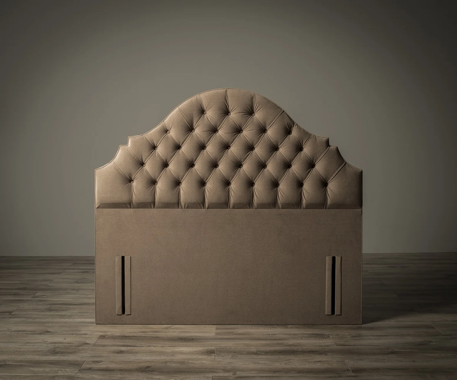 The Sofia Chesterfield Headboard has been photographed in Tan Suede fabric.