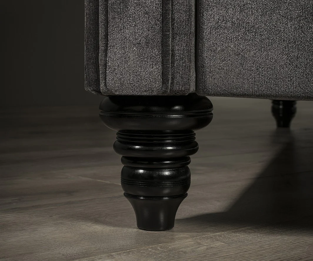 The Stanhope Chesterfield Bed is a truly decadent bedstead. This is your opportunity to own an upholstered bed with timeless appeal. The Stanhope features superb chunky, curved head & footboards with piped trimming. Side rails are padded and upholstered in matching fabric, and the bed frame sits on turned wenge feet. The Stanhope Chesterfield Bed is constructed from a solid hardwood mix that ensures long-lasting durability and now features a beech-sprung base as standard.