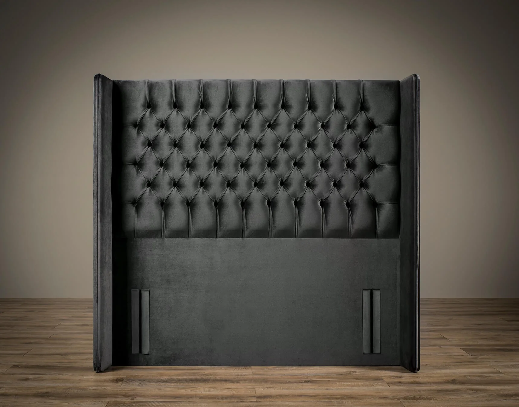 Our Tall Winged Chesterfield Headboard will fit any standard UK size divan base.